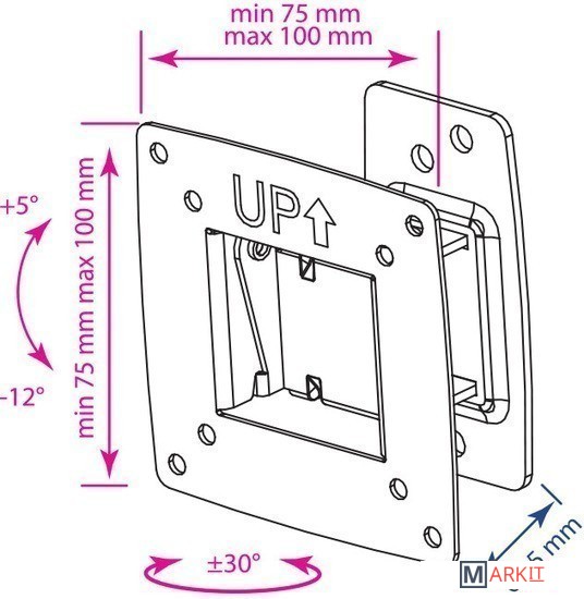 | Угол поворота (без ТВ) | 30 ° |