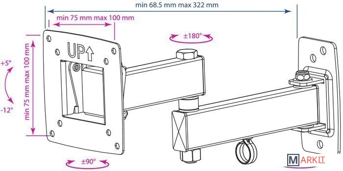 | Расстояние от стены (потолка) | 68.5 — 322 мм |