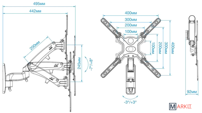 | Расстояние от стены (потолка) | 92 — 495 мм |