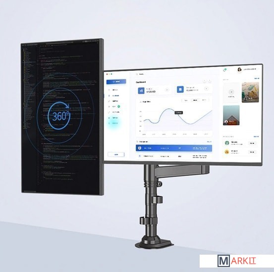 | Функциональные особенности | поворотный, кабель-канал, струбцинное крепление, для 2 мониторов |