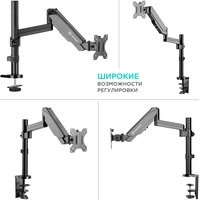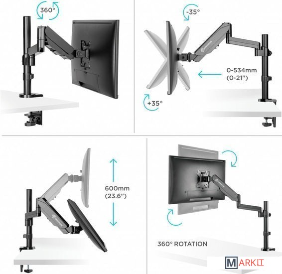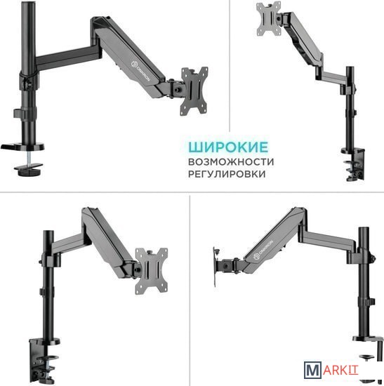 | Функциональные особенности | поворотный, с регулировкой высоты, кабель-канал, струбцинное крепление |
