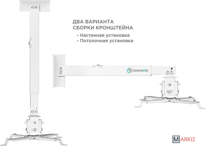 Кронштейн KRON K1A подходит для большинства проекторов, весом до 10 кг. Конструктивно данный кронштейн для проектора является потолочным с изменяемым расстоянием от потолка от 430 до 630мм, что позволяет настроить необходимое расстояние уже после подвешивания.