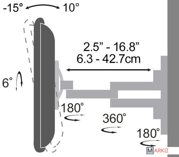 | Угол поворота (без ТВ) | 180 ° |