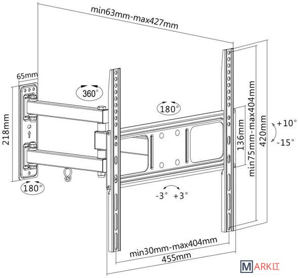 | Расстояние от стены (потолка) | 63 — 427 мм |