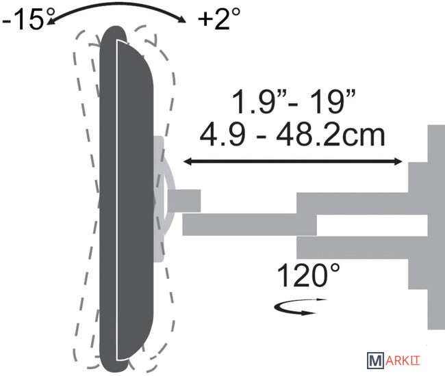| Угол поворота (без ТВ) | 120 ° |