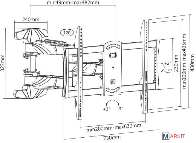 | Расстояние от стены (потолка) | 49 — 482 мм |
