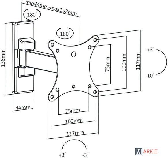 | Расстояние от стены (потолка) | 44 — 192 мм |