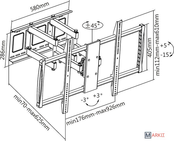 | Расстояние от стены (потолка) | 70 — 625 мм |