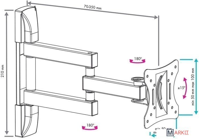| Расстояние от стены (потолка) | 70 — 350 мм |