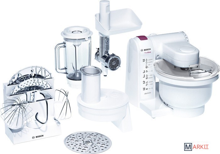 | Функции | мясорубка, блендер, взбивание, смешивание, замешивание дрожжевого теста, терка, шинковка, ломтерезка |