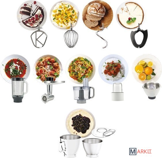 | Функции | мясорубка, цитрус-пресс, взбивание, смешивание, замешивание дрожжевого теста, измельчитель, рубка |