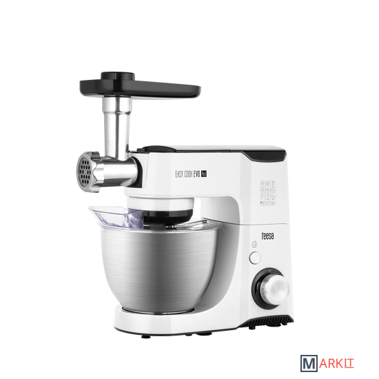 Блендер 1,25лЧаша 4,5лЧаша комбайна 1,25лМясорубка (2 фильтра: средний, крупный, насадка для колбас)Измельчитель (4 диска: 2 для шинковки - мелкий и крупный, для нарезки, натирание)Крюк для тестаНасадка для смешиванияВенчик