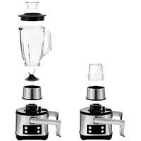 Функции блендер, соковыжималка, цитрус-пресс, взбивание, смешивание, измельчитель, рубка, терка, шинковка, ломтерезка, помол круп, кофе