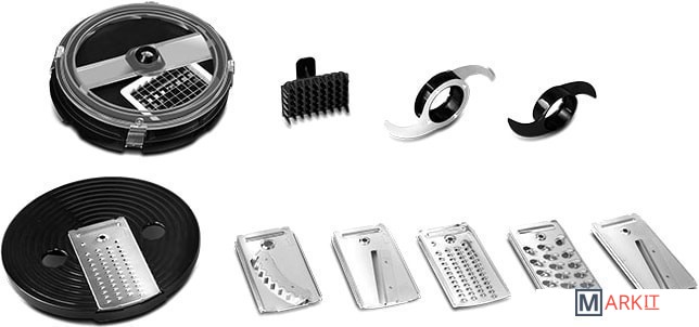| Функции | измельчитель, рубка, терка, шинковка, ломтерезка, нарезание кубиками |