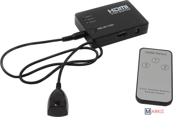 Устройство предназначено для подключения трех HDMI источников видеосигнала (такими как DVD-проигрыватели, спутниковые ресиверы, цифровые видеокамеры и т.д.) и вывести изображение на экран телевизора или монитора. Управлять выбором источника сигнала можно с пульта дистанционного управления или при помощи кнопки на корпусе устройства.Максимальное выходное разрешение 1920х1080p. В комплект поставки не входит блок внешнего питания.