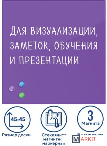 Markit » Офисные доски, флипчарты » Магнитно-маркерная доска BRAUBERG стеклянная 45x45 см (фиолетовый)