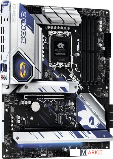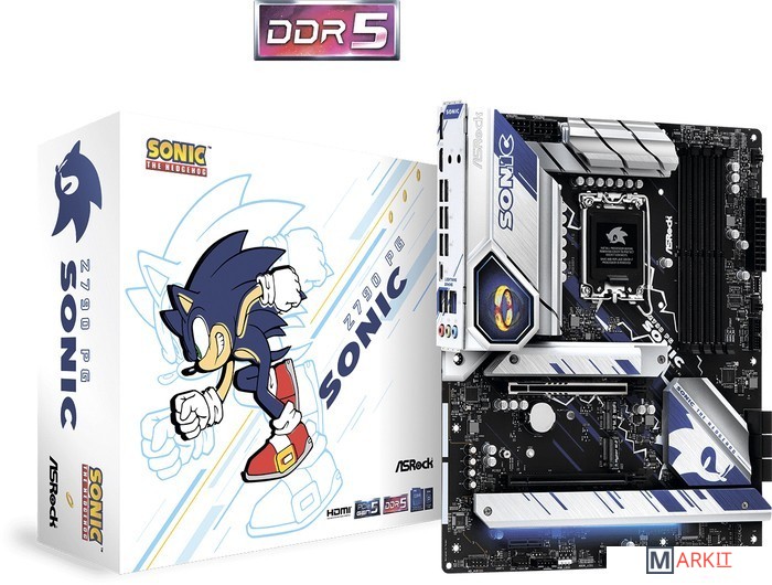 ASRock Z790 PG SONIC – это лицензионная материнка по мотивам игры «Sonic the Hedgehog» от SEGA. Задняя панель украшена знаменитыми 16-битными кольцами, а на обратной стороне платы нанесено изображение бегущего Соника. Компания ASRock выпустила эту материнскую плату в партнёрстве с SEGA в знак выхода новой игры «Sonic Frontiers».Материнская плата подарит воспоминания о приключениях на Зелёных холмах, а серебристо-синие изображения из игры символизируют общую скорость и стремительность.«Кольцо» – это предмет из игр про ёжика Соника. Происхождение колец неизвестно, однако, их можно найти в различных местах на Земле, в других мирах, а также на материнских платах!«14+1+1»-фазное питание с транзисторами Dr.MOSНадёжные компоненты обеспечивают ровное и плавное питание ЦП, а также широчайшие возможности для разгона и улучшенную производительность в современных играх при низких температурах.Двойные слои медиВнутренние медные слои удвоенной толщины обеспечивают стабильность сигнала и профилей мощности, а также низкие температуры и прирост эффективности при разгоне.ASRock Z790 PG SONIC создана для современных геймеров! Именно поэтому она получила наибыстрейший интерфейс PCI-Express 5.0 для топовых видеокарт и разъём Blazing M.2 для новых ультраскоростных накопителей NVMe SSDs.