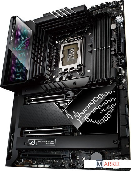 Материнская плата на базе чипсета Intel Z690: форм-фактор ATX, 20+1 силовой модуль, DDR5, пять слотов M.2, фронтальный интерфейс USB 3.2 Gen2x2, два порта Thunderbolt 4, PCIe 5.0, Wi-Fi 6E, синхронизируемая подсветка AuraРазъем LGA 1700 для процессоров Intel Core 12-го поколения, Pentium Gold и CeleronЭксклюзивные интеллектуальные технологии: разгона, охлаждения, сетевого подключения и двухстороннего шумоподавленияНовые процессоры Intel под кодовым названием Alder Lake-S создают повышенную нагрузку на систему питания, но плата ROG Maximus Z690 Hero к этому готова: продуманная схема стабилизатора напряжения, рассчитанная на ток до 90 А, премиальная элементная база и оптимизированная разводка слотов памяти гарантируют стабильную работу компьютера как в играх, так и в любых других приложениях.Мощная система питания: 20+1 силовой модуль (90 А каждый), разъемы питания ProCool II, сплавные дроссели Microfine, металлические конденсаторыОптимизированное охлаждение: большие радиаторы системы питания с интегрированным алюминиевым кожухом интерфейсной панели, термопрокладки с высокой теплопроводностью, три радиатора M.2 с двумя усилительными пластинами, разъемы для подключения СВО, радиаторы на адаптере ROG Hyper M.2Скоростное сетевое подключение: встроенный беспроводной модуль Wi-Fi 6E, порт 2.5G Ethernet (контроллер Intel, с электрозащитой LANGuard)Передовые интерфейсы: PCIe 5.0, два слота M.2 с режимом PCIe 4.0, адаптер ROG Hyper M.2 с поддержкой режима PCIe 5.0, фронтальный порт USB 3.2 Gen2x2, два порта Thunderbolt 4 (USB-C)Великолепный звук: аудиокодек ROG SupremeFX ALC4082 и цифроаналоговый преобразователь ESS ES9018Q2CПолноцветная подсветка Aura: встроенная подсветка и разъемы для подключения внешней, технология синхронизации Aura SyncДля энтузиастов: предустановленная корпусная заглушка, кнопка Q-Release, удобное обновление прошивки (BIOS FlashBack), диагностический индикатор Q-Code, перепрограммируемая кнопка перезагрузки (FlexKey), Q-Connector, защелки Q-Latch для слотов M.2, адаптер ROG Hyper M.2, технология SafeSlot, кронштейн для видеокартыДополнительное программное обеспечение: 1-годичная подписка на AIDA64 Extreme и встроенная в интерфейс UEFI BIOS утилита MemTest86