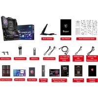 Поддержка процессоров 12-го поколения Intel Core / Pentium Celeron для разъема LGA 1700Поддержка памяти DDR5 с частотой 6666 МГц и выше (в режиме разгона)Высокоскоростные интерфейсы: слоты PCIe 5.0, M.2 (PCIe 4.0 x4), USB 3.2 Gen2x2Мощная система питания: схема 18+1+1 с прямым подключением фаз, два 8-контактных разъема питания процессора, технологии Core Boost и Memory BoostЭффективная система охлаждения: большой радиатор с тепловой трубкой, термопрокладки на транзисторах с теплопроводностью 7 Вт/(м·K), дополнительные термопрокладки на дросселях, радиаторы Shield Frozr на слотах M.2Подсветка Mystic Light с гибкой регулировкой: 16,8 млн цветов и несколько визуальных эффектов, подключение внешней адресуемой и неадресуемой подсветкиКонтроллеры 2.5G Ethernet (с трафик-менеджером LAN Manager) и Intel Wi-Fi 6E: высокоскоростное и стабильное проводное и беспроводное сетевое подключение для широкого спектра приложенийАудиосистема Audio Boost 5: высококачественное звучание, создающее неповторимую атмосферу в играхВысококачественная конструкция: 8-слойная печатная плата с увеличенным содержанием медиПредустановленная панель ввода/вывода: защищает от электромагнитных помех и облегчает установку материнской платы