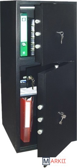 2-х дверный, в нижнем отсеке одна съемная полка, трейзер, в верхнем отсеке одна съемная полка, возможно обратное расположение, механический замок Kaba-Mauer (Германия).
