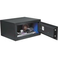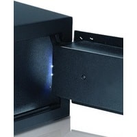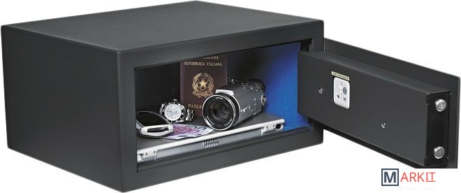 Покраска с эффектом шагрени и внутреннее светодиодное освещение придают сейфу благородный вид, делая его универсальным для любого современного интерьера.Сейфы серии SMART оснащены системой AUDIT TRAIL, запоминающим информацию по последним 300 открываниям сейфа. Система будет полезна для отелей, которым важна своя репутация.Если пользователь забыл код, предусмотрена возможность аварийного открывания сейфа с помощью электронного или механического ключа. В случае полного разряда батареи есть возможность подачи дополнительного электропитания.В зависимости от необходимости, Вы можете установить любой кодовый замок, длинна которого не будет превышать девяти цифр. Специальная светодиодная подсветка делает использование сейфа еще более удобным.Если пользователь забыл код, то в сейфе предусмотрена возможность аварийного открывания при помощи электронного или механического ключа, которые приобретаются дополнительно.
