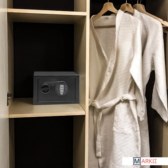 Модель SF1-310-200 можно как встроить, так и установить отдельно;Комфортное управление с помощью электронной клавиатуры;Компактный размер;Функция блокировки замка;Оповещение о разряде батареи;Электронный замок;Блокировка ригелей;Удобный коврик;Если пользователь забыл код, то в сейфе предусмотрена возможность аварийного открывания при помощи мастер кода, который обычно устанавливает ответственное лицо отеля. Также сейф можно открыть с помощью механического ключа. Отверстие для ключа находится под надёжным ограничителем.