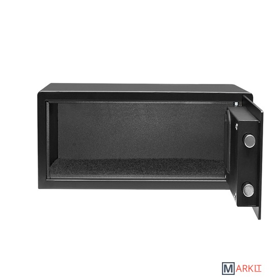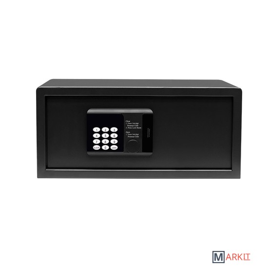 Модель SF3-430-200 можно как встроить, так и установить отдельно;Комфортное управление с помощью электронной клавиатуры;Подходит для хранения ноутбука диагональю до 17 дюймов;Функция блокировки замка;Оповещение о разряде батареи;Питание от батареек (приобретаются отдельно);Стальной корпус;Удобный коврик;Блокировка ригелей;Если пользователь забыл код, то в сейфе предусмотрена возможность аварийного открывания при помощи мастер кода, который обычно устанавливает ответственное лицо отеля. Также сейф можно открыть с помощью механического ключа. Отверстие для ключа находится под надёжным ограничителем.
