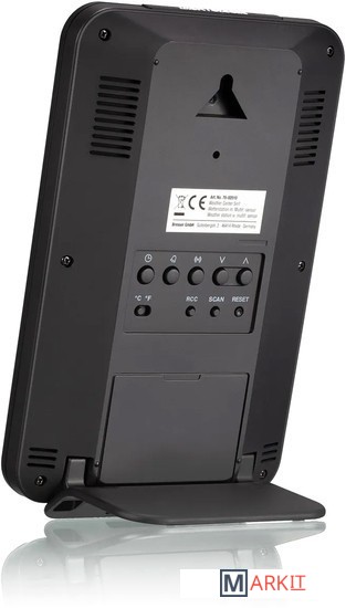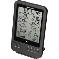 Многофункциональная метеостанция Bresser «5 в 1» – выбор тех, кто хочет следить за всеми изменениями погоды за окном и микроклимата дома. Она проводит измерения внутри и снаружи помещения, показывает текущую информацию, составляет графики изменений за последние сутки и прогноз погоды на ближайшие 12 часов. Вся информация выводится на встроенный экран метеостанции в структурированной и наглядной форме.В верхней половине экрана можно увидеть время, день недели, дату, фазу Луны, а также температуру и влажность в помещении и на улице. Рядом показывается иконка общего уровня комфорта. В нижней половине экрана расположены изображение прогноза погоды, график изменения атмосферного давления, шкала индекса Бофорта, сведения о направлении и скорости ветра, уровень выпавших осадков. Также метеостанция определяет точку росы и тепловой индекс. Под экраном находятся основные кнопки управления. Еще часть кнопок вынесена на заднюю крышку.Метеостанция дополнена беспроводным наружным датчиком, связь с которым прибор может поддерживать на расстоянии до 30 метров. Для питания основного модуля и датчика используются батарейки, т. е. нет необходимости прокладывать по квартире провода. Метеостанцию можно ставить на полку или вешать на стену (крепеж включен в комплектацию).