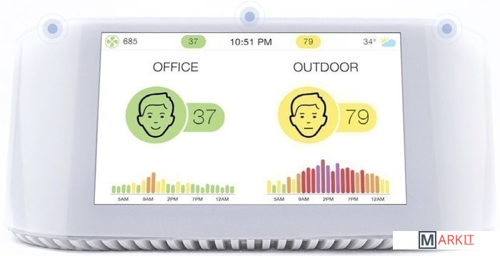 Измеряет: CO2, PM2.5, PM10, а также влажность и температуру.Прогноз качества воздуха и погоды на ближайшие 3 дня.Позволяет делиться с друзьями информацией.Подключается к Wi-Fi.Данные о качестве воздуха за окном от ближайшей станции мониторинга качества воздуха.