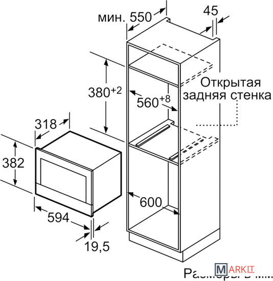 | Размеры ниши для встраивания |