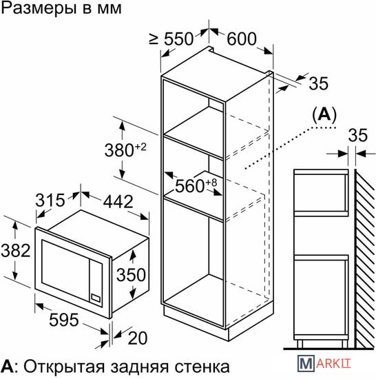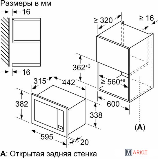 | Размеры ниши для встраивания |