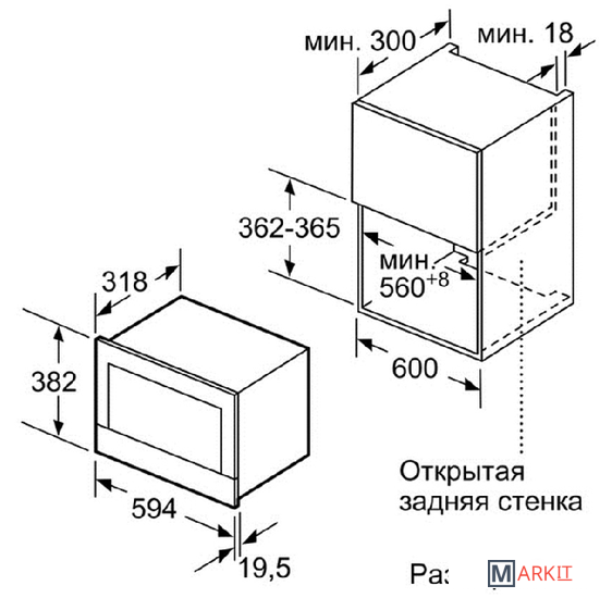 | Размеры ниши для встраивания | |