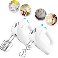 Класс защиты от поражения электрическим током: II;Материал корпуса: пластик;Материал насадок: хромированная сталь;Размеры: 195x80x135 мм;Вес: 0.9 кг.Комплектация:- миксер;- 2 венчика для взбивания;- 2 крюка для замеса;- руководство по эксплуатации.