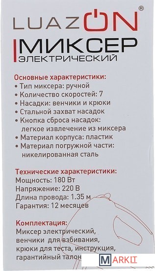 Markit » Ручные миксеры » Миксер Luazon LMR-02
