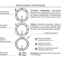 | Режимы работы духового шкафа |