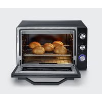 TO 2066 XXL Печь для выпечки и тостов60-литровая рабочая камера XXL для больших порций с внутренним освещением и высококачественным антипригарным покрытием для легкой очисткиидеальная хрустящая пицца благодаря входящему в комплект очень большому камню для пиццы ( 30,5 см) и функции нижнего/верхнего жарапростое приготовление цыплят на гриле с помощью функции гриля с включенным грилем и приводом для гриляШирокий выбор вариантов приготовления от картофеля фри до пирогов благодаря верхнему/нижнему нагреву, функции конвекции и прилагаемым решетке для гриля и противню.Мощность: около 2200 Втутепленный корпус2-часовой таймер с функцией автостопа для всех режимов