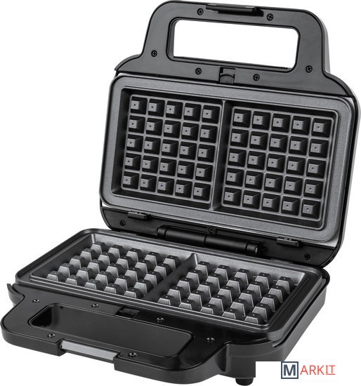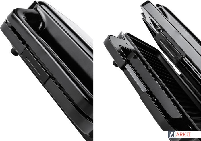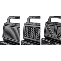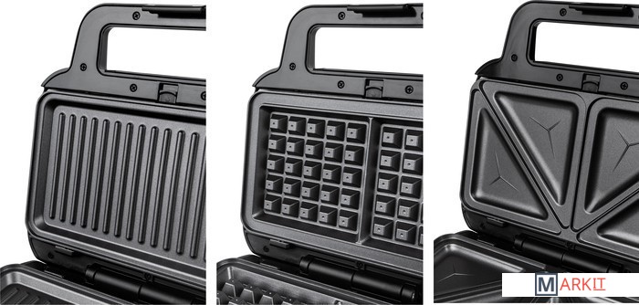 В комплекте три съемные пластины с антипригарным покрытием: для приготовления сэндвичей, для гриля и вафель.