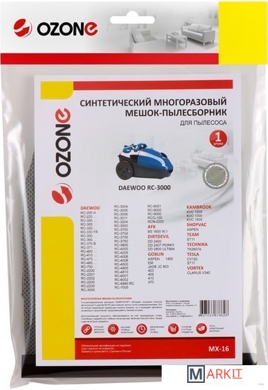 Markit » Аксессуары для пылесосов, пароочистителей » Многоразовый мешок Ozone MX-16