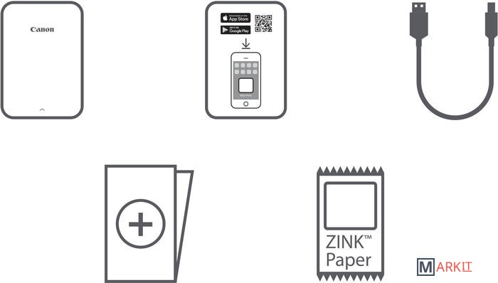 Комплектация • Фотопринтер Canon Zoemini• 1 упаковка фотобумаги ZINK (10 листов фотобумаги и 1 лист SMART SHEET)• Кабель для зарядки Micro USB (USB A – Micro)• Руководство по началу работы• Юридический документ