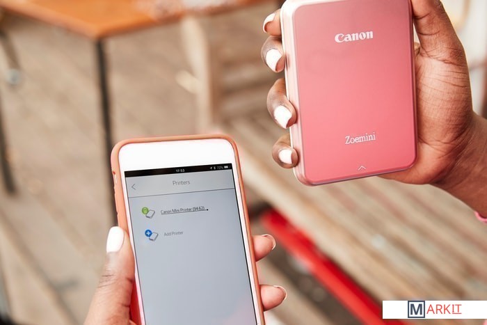 Карманный принтер Canon Zoemini для мгновенной печати фотографий с мобильного устройства с помощью Bluetooth и приложения Canon Mini Print. В приложении доступны редактор фото, фильтры, рамки, стикеры, элементы дополненной реальности, а также функция создания коллажей из 4 или 9 снимков. Устройство выполнено в миниатюрном корпусе и помещается в кармане или небольшом отделении сумки. Специальная фотобумага ZINK представляет собой многослойный материал с микрокристаллами, которые при нагревании создают водонепроницаемое и устойчивое к пятнам и разрывам покрытие. Бумага оснащена съемным защитным слоем для приклеивания фотографии на любую поверхность.