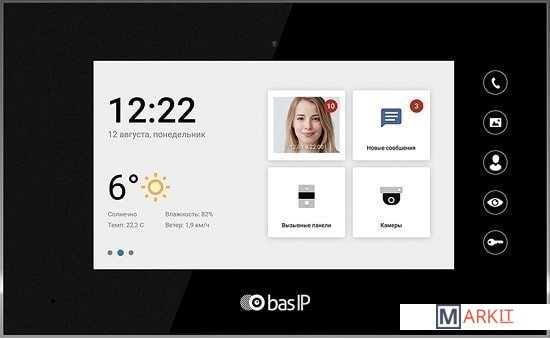 Внутренний 7-дюймовый IP-видеодомофон с IPS-экраном, разрешением 1024x600, возможностью подключения датчиков тревоги, и подключением кнопки звонка. Внутренний видеодомофон работает под управлением операционной системы Android 6.0. Имеет два варианта установки: настенное накладное крепление и крепление врезным монтажом с использованием специального кронштейна.
