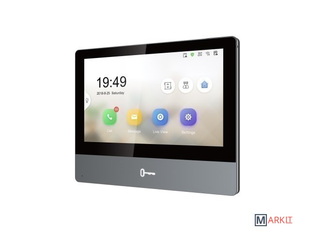 Hikvision DS-KH8350-TE1 – это новый цветной IP видеодомофон в ультра-тонком корпусе. Устройство поддерживает работоспособность сетевых вызывных панелей и камер, в том числе удаленно через смартфон или планшет с помощью приложения Hik-Connect. Ethernet сеть через порт RJ45 (10M/100M) работает по протоколам TCP/IP, SIP и RTSP. Также имеется интерфейс связи RS-485.Домофон оснащен 7-дюймовым цветным сенсорным IPS LCD экраном, который защищен премиальным закаленным стеклом. Для управления работой и настройками применяется главное экранное меню в виде удобного обновленного пользовательского интерфейса UI V2.0. Также справа выводятся сенсорные кнопки управления. Для открытия электрозамка предусмотрена отдельная механическая кнопка.Возможно подключение к домофону 8 вызывных панелей и 24 видеокамеры. В режиме интеркома можно подсоединить еще 200 мониторов данной фирмы, устройство консьержа или клиентов с установленным ПО iVMS-4200. Это даст возможность поддерживать аудиосвязь с этими устройствами. Качественные переговоры поддерживаются функцией понижения шумов и эха.Данная модель оснащена модулем беспроводной связи Wi-Fi.