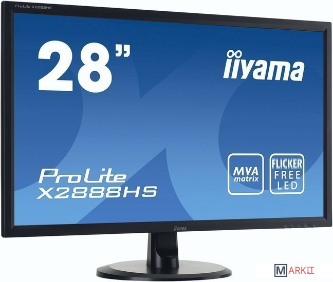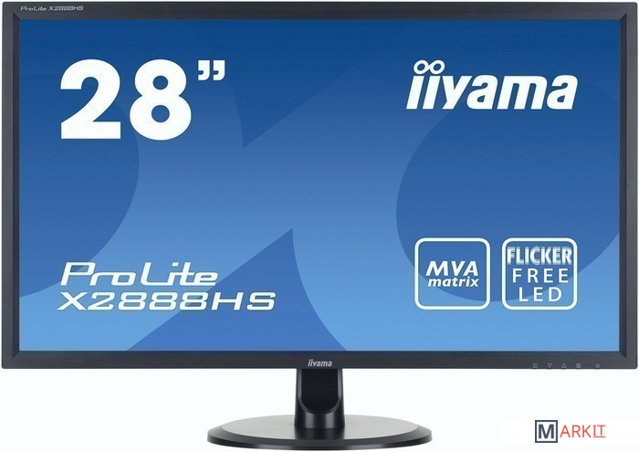 ProLite X2888HS-B1 оснащен 28" матрицей MVA со светодиодной подсветкой, разрешением 1920x1080, временем отклика 5 мс и уровнем динамической контрастности 12 000 000:1 (статическая - 3 000:1), а также двумя встроенными динамиками по 3 Вт. Поддерживает подключение мобильных устройств (MHL).