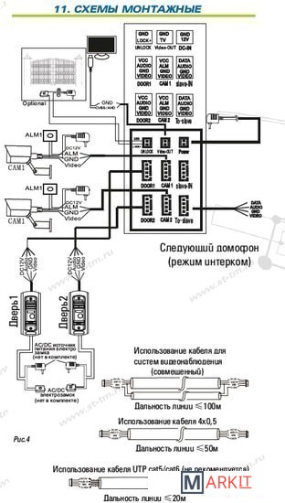 | Подключение вызывных панелей | 4-проводное |