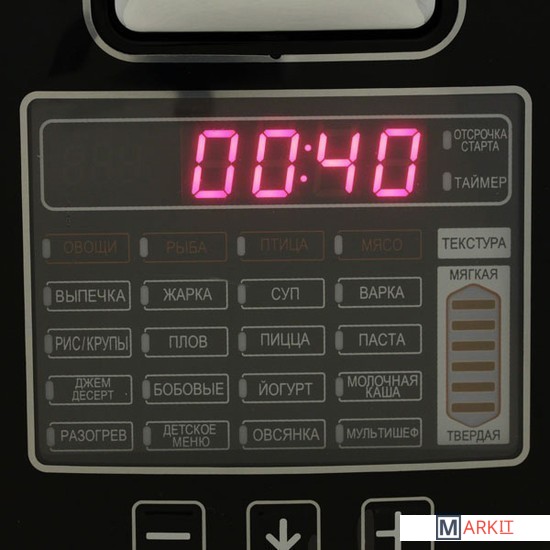 Установка температуры 40 — 170 °C  (40-160 °C в режиме "Мультишеф", 100-170 °C в режиме "Жарка")