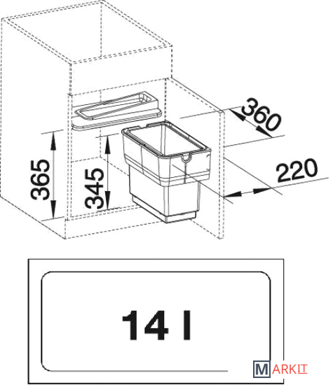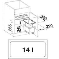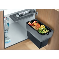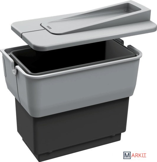 Контейнер для мусора объемом 14 л очень легко вынимаетсяОткрывается с помощью двери шкафаНа крышке, закрывающей контейнер, могут храниться легкие кухонные принадлежностиПодходит для шкафов 45 см, 50 см и 60 смЛегко крепится, подходит даже для дверей шкафов без петельРазмеры 36 х 22 х 36.5 см