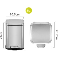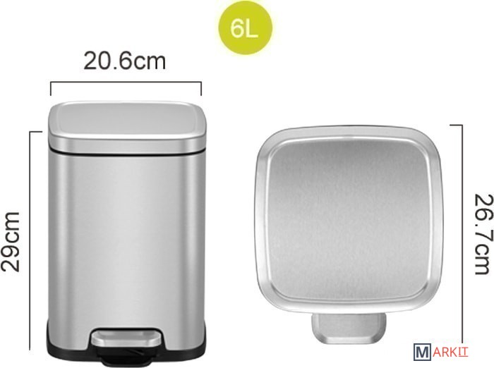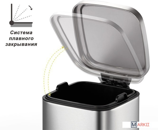 Современное мусорное ведро с педалью EK9384MT-6L из нержавеющей стали с защитой поверхности от отпечатков пальцев, с механизмом плавного закрывания, с одной вставной полипропиленовой емкостью. Система быстрой фиксации мусорного мешка, система фиксации крышки в открытом положении для удобства смены мусорных мешков. Производство мирового лидера премиального сегмента, концерна EKO GROUP.