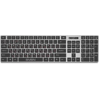 Беспроводной ресивер у комплекта общий и займет только один порт USB, что очень удобно. Правая и левая клавиши манипулятора бесшумны и не будут мешать громкими щелчками ни самому пользователю, ни его соседям по офису или дому. Боковые кнопки навигации с тихим кликом серьезно упрощают работу в браузере и с офисными приложениями. Клавиатура имеет стандартную раскладку из 109 низкопрофильных клавиш с приятным мягким ходом. Из них 12 — клавиши быстрого доступа, активируемые с помощью кнопки-модификатора Fn. Отдельно вынесены 4 клавиш для управления интернетом, оптимизирующие работу в браузере. Клавиша с быстрым вызовом приложения «Калькулятор» очень пригодится для частых расчетов.