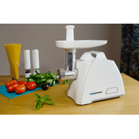 Металлическая мясорубкаТихая работа: ниже 78 дБВысококачественные материалы без бисфенола А3 диска, лезвие, пластиковый лоток для кормления, толкатель пищевых продуктовЭлектропитание: 220-240 В ~ 50/60 Гц,