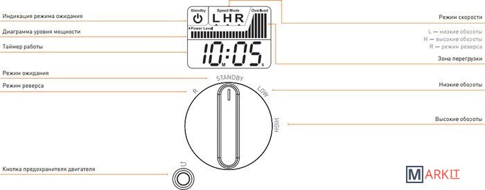 | Максимальная мощность при блокировке вала | 2 300 Вт |